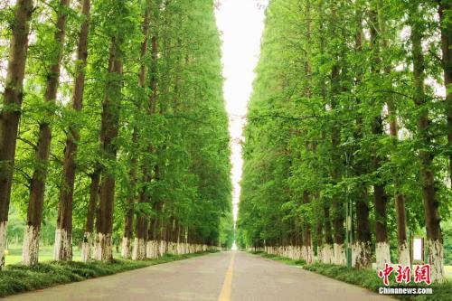 金島生態(tài)園成排的水杉樹。袁秀月 攝