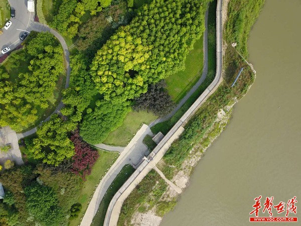不過今天記者站在箱子拐的防洪墻上,看到的是平整有序的岸線,江面上不時有大船駛過,并沒有船舶?俊6硪粋(cè),則是一片郁郁蔥蔥,市民浸身其中盡享綠色和諧之美。