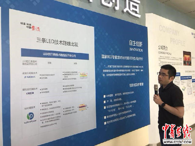 晶能光電副總經(jīng)理邵文良在向記者介紹國(guó)產(chǎn)LED芯片相關(guān)情況。中國(guó)青年報(bào)·中青在線(xiàn)記者 于璧嘉攝