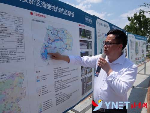 中交貴州海綿城市投資建設(shè)有限公司副總經(jīng)理盧金山介紹海綿城設(shè)施(攝/范逸昕)