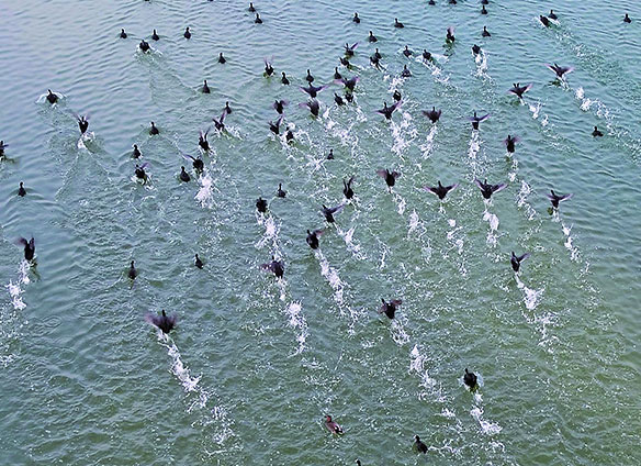 5月25日,水鳥在希尼爾水庫水面嬉戲。在萬畝胡楊林的守護(hù)下,希尼爾水庫與周邊環(huán)境呈現(xiàn)出生機(jī)盎然的景象。 □肖玉磊攝