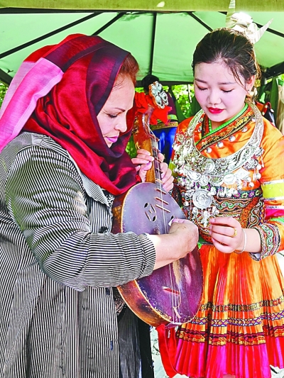 人文交流是上合組織的重要組成部分,人文合作是相互了解和增進(jìn)友誼的重要橋梁。今年5月中旬,阿富汗藝術(shù)家受中國文化和旅游部之邀來華采風(fēng)創(chuàng)作,以增進(jìn)人文交流。圖為5月19日,阿富汗藝術(shù)家在貴州省黔西南布依族苗族自治州了解民族樂器演奏。本報記者 郭紅松攝/光明圖片
