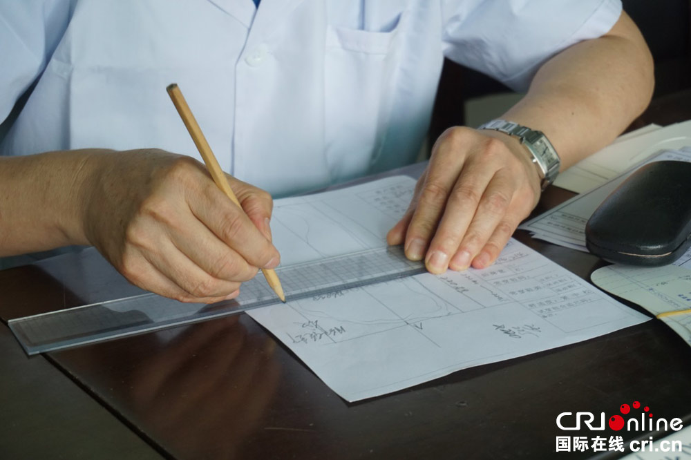 陳國學根據(jù)腳型測量圖設(shè)計鞋楦。攝影:聶崢