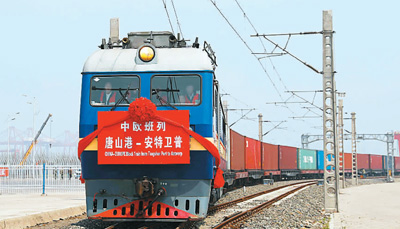 圖為中國唐山港至比利時安特衛(wèi)普的中歐班列開通。