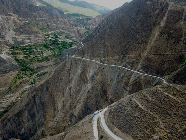 羊拉地處滇川藏三省交界的橫斷山脈地區(qū),金沙江從此穿流而過。這里不僅山高谷深,溝壑縱橫,其最高海拔落差近4000米?偯娣e達1087平方公里的羊拉鄉(xiāng)常住人口僅有5800多人。“人在天上走,鷹在腳下飛!边@是當?shù)厝罕妼ρ蚶返纳鷦用枋觥4蠹叶颊f,在羊拉公路上發(fā)生車禍就是“空難”,隨時都有可能出現(xiàn)的落石以及猝不及防的塌方就是“空襲”。