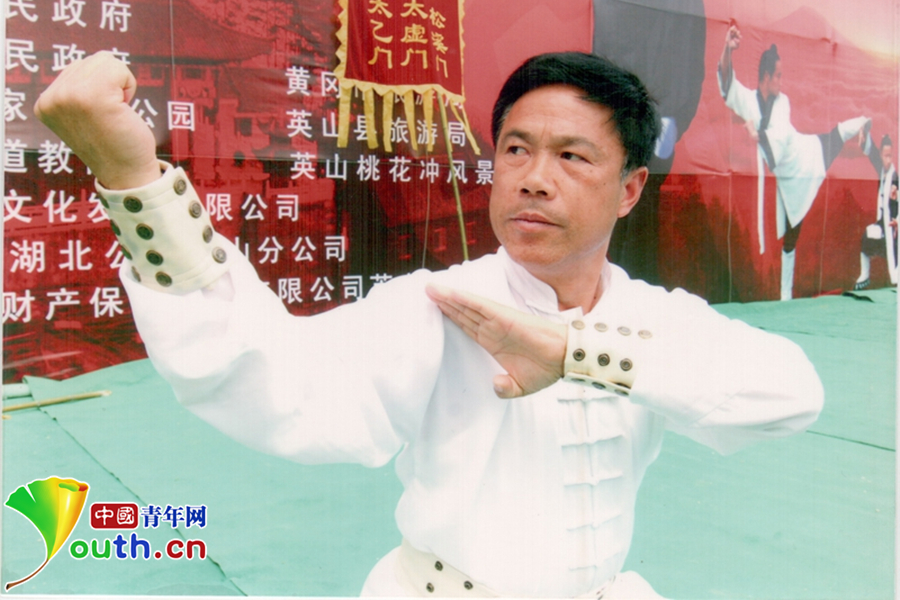 2007年5月在英山縣舉辦的第一屆“南武當杯”國際武術節(jié)上,岳家拳傳承人張業(yè)金現(xiàn)場表演獻技。