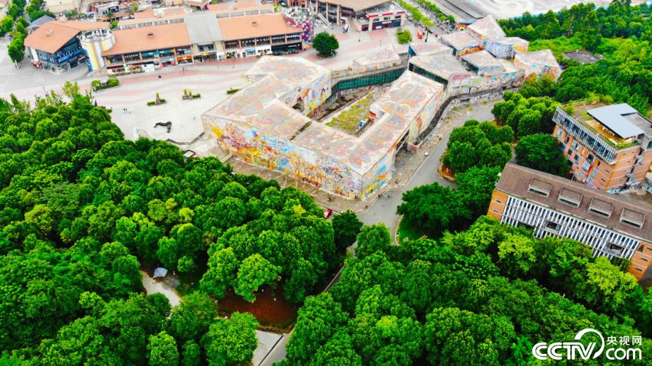 圖為萬綠叢中一點斑斕。參觀者像是在一幅巨大的油畫中漫步。美術(shù)館的外墻也是一件精美的藝術(shù)品,彩色瓷磚貼裝,讓四川美術(shù)學院美術(shù)館更顯文藝。
