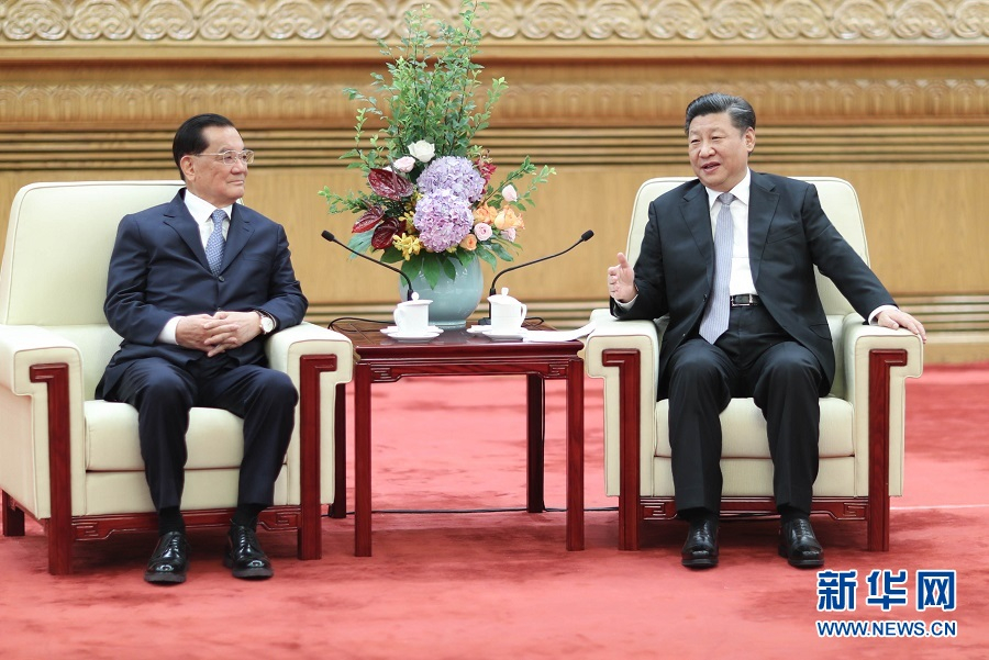 7月13日,中共中央總書記習(xí)近平在北京人民大會堂會見中國國民黨前主席連戰(zhàn)率領(lǐng)的臺灣各界人士參訪團(tuán)。 新華社記者鞠鵬攝