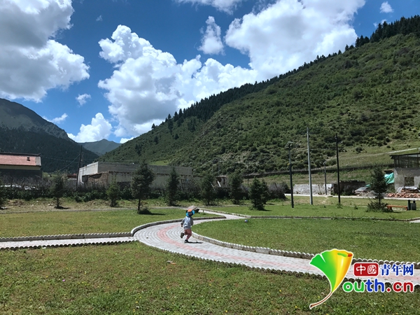 熊貓溝村小孩在玩耍。中國(guó)青年網(wǎng)記者 張瑞宇攝