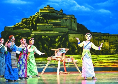 6月26日至27日,2018年全國基層院團戲曲會演參演劇目、由西藏自治區(qū)藏劇團編劇演出的改編傳統(tǒng)藏戲《朗薩雯波》在北京中國評劇院上演。 新華社記者 李京攝