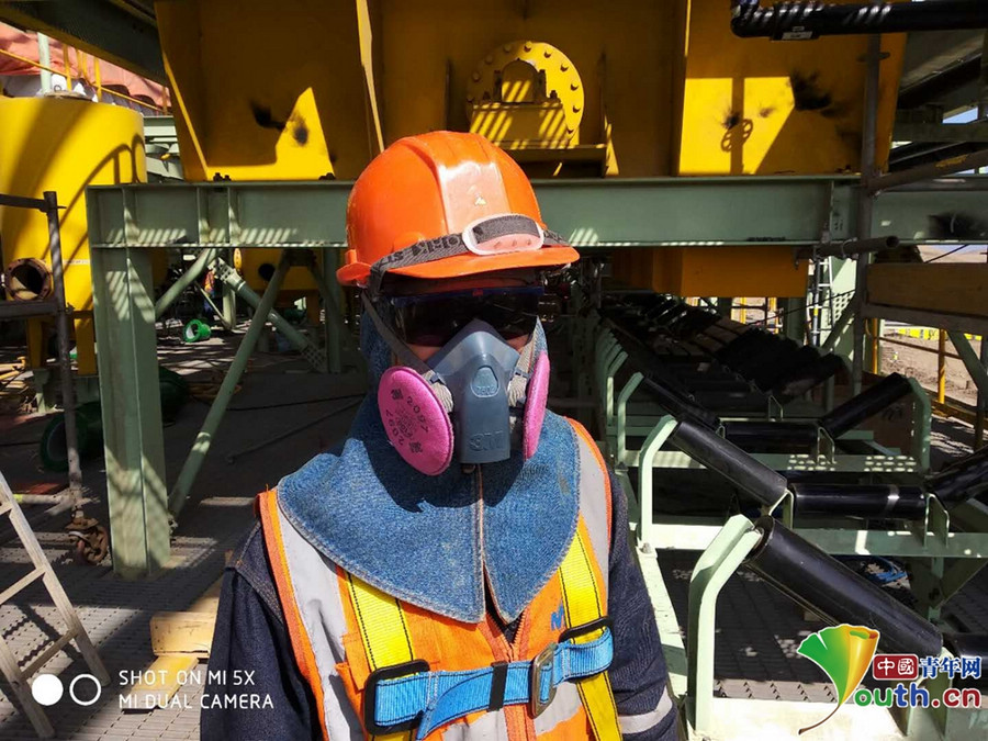 張松領(lǐng)在秘魯工地全副武裝。本人供圖