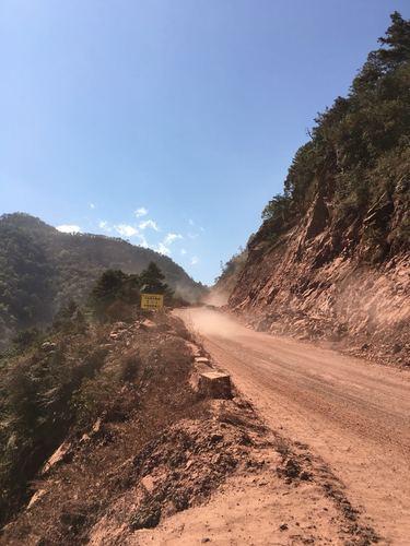 通往昭覺縣的土路,一側(cè)是山體,一側(cè)是懸崖