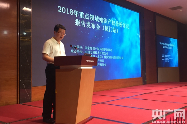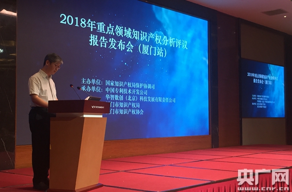 央廣網(wǎng)廈門8月2日消息(記者呂貝娜)知識產(chǎn)權(quán)是創(chuàng)新競爭力。開展知識產(chǎn)權(quán)分析評議,既是保障產(chǎn)業(yè)安全、服務(wù)產(chǎn)業(yè)發(fā)展的有效方式,也是支撐創(chuàng)新驅(qū)動、推動強國建設(shè)的具體舉措之一。8月2日,2018年重點領(lǐng)域知識產(chǎn)權(quán)分析評議報告發(fā)布會首站在廈門舉行,圍繞信息技術(shù)領(lǐng)域發(fā)布相關(guān)產(chǎn)業(yè)的知識產(chǎn)權(quán)分析評議報告。本次發(fā)布會由國家知識產(chǎn)權(quán)局保護協(xié)調(diào)司主辦,中國專利技術(shù)開發(fā)公司、華智數(shù)創(chuàng)(北京)科技發(fā)展有限責(zé)任公司承辦,廈門知識產(chǎn)權(quán)局、廈門知識產(chǎn)權(quán)協(xié)會協(xié)辦,來自國家知識產(chǎn)權(quán)局及相關(guān)單位、廈門市知識產(chǎn)權(quán)局、各企事業(yè)單位、高校、科研院所和知識產(chǎn)權(quán)服務(wù)機構(gòu)的代表200余人參加了會議。