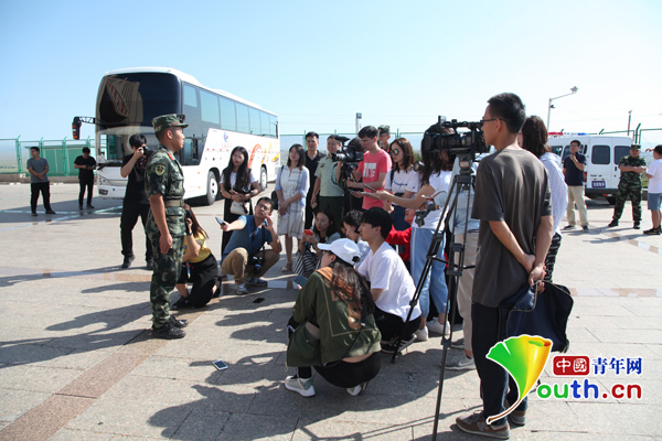 采訪團在新疆生產(chǎn)建設兵團阿拉山口市邊檢站采訪。天山網(wǎng)編輯 楊運鵬 攝