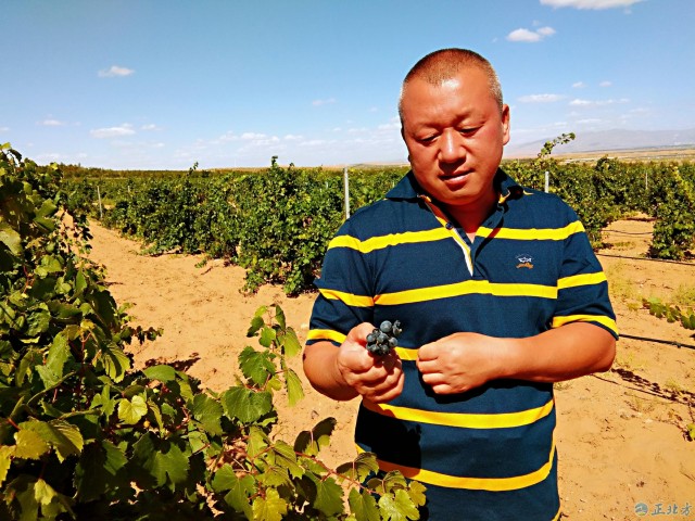 “以前這里是一望無際的沙丘,十幾年來,通過推平沙漠,開墾成一米寬一米深的溝,然后在溝里置換土地,種植葡萄。這樣持續(xù)治理以后,就變成了如今的綠洲!9月6日,安恩達(dá)指著集中連片的葡萄架說。