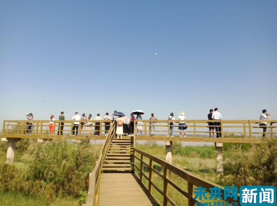 采訪團(tuán)記者們登上瞭望塔拍攝保護(hù)區(qū)內(nèi)的鳥兒。 未來(lái)網(wǎng)記者 劉文靜 攝