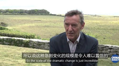 “我們騎行在一些村莊附近。在一個(gè)村子外面,我們看到了這個(gè)巨大的廣告牌,上面用英語寫著:‘英語成功,生活成功’。當(dāng)時(shí)我就把它拍了下來!彼f!拔耶(dāng)時(shí)就覺得:‘哇,這對(duì)我這樣一個(gè)心系中國(guó)的英國(guó)人而言意味著什么呢?’更重要的是,這對(duì)于英國(guó)而言去改善與中國(guó)經(jīng)濟(jì)、金融和外交關(guān)系的機(jī)會(huì)又意味著什么呢!