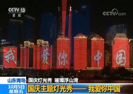 央視網(wǎng)消息:“我愛你中國”主題燈光秀昨晚在山東青島上演。