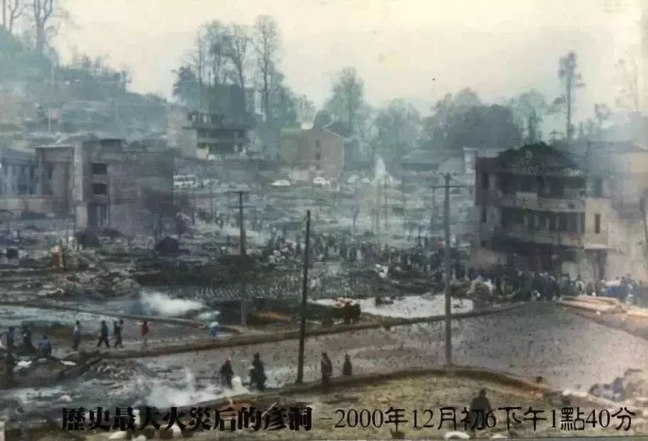 ▲2000年12月31日彥洞村發(fā)生特大寨火,廢墟上的彥洞村百廢待興。