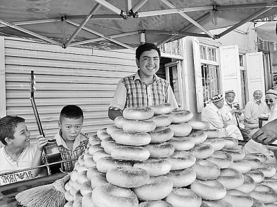 喀什老城區(qū)里正在賣馕的小伙子 光明日?qǐng)?bào)記者 王瑟攝/光明圖片