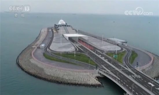 過“中國結”往東,就是西人工島,島長625米,面積10.17萬平方米,承擔大橋救援、養(yǎng)護等功能。