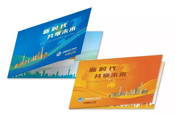 圖片說明:中國國際進口博覽會紀念折分為開幕紀念和閉幕紀念兩款