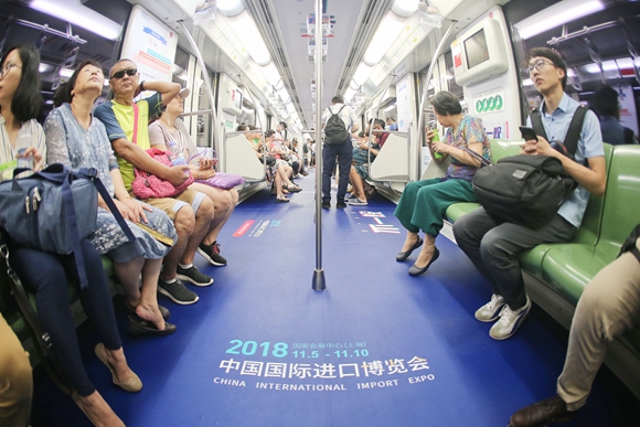 此外,為了迎接進口博覽會的舉辦,上海地鐵推出了4列“進口博覽會專列”。這些滿載著此次盛會“知識貼”和社會各界深情寄語的專列,將一直運行到11月10日首屆中國國際進口博覽會結(jié)束。其中,2列“進口博覽會專列”將運行于上海地鐵2號線,這條線路連接上海兩大國際機場、高鐵虹橋站并直達國家會展中心;另外2列專列將運行于途經(jīng)虹橋機場和高鐵虹橋站的上海地鐵10號線。