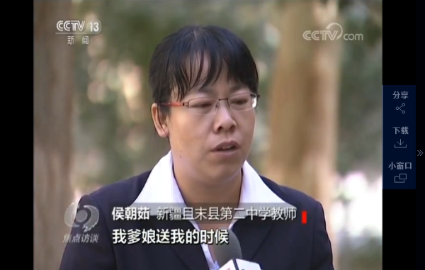 候朝茹接受《焦點訪談》節(jié)目的采訪。