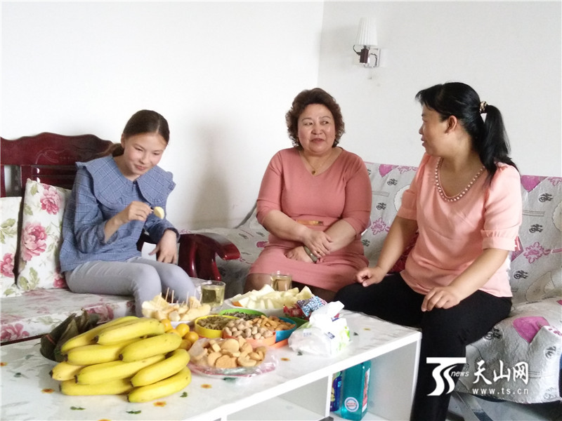 端午節(jié)古麗努爾 ·卡斯木(中)帶女兒到侯朝茹(右一)家里做客。(資料圖片)