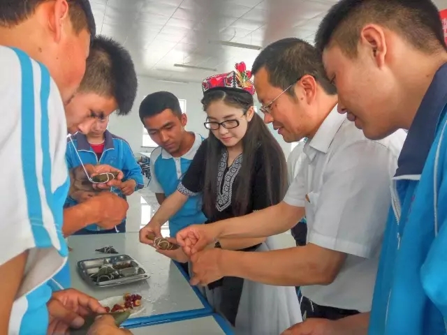 周正國和少數(shù)民族學(xué)生們一起過端午節(jié)包粽子。(來源人民日報官微)
