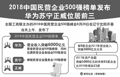 在全國工商聯(lián)日前發(fā)布的“2018中國民營企業(yè)500強(qiáng)”榜單中,華為投資控股有限公司名列榜首。光明圖片/視覺中國
