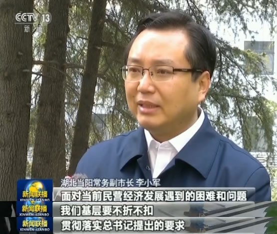 湖北當(dāng)陽常務(wù)副市長(zhǎng) 李小軍:民營(yíng)經(jīng)濟(jì)只能壯大、不能弱化,面對(duì)當(dāng)前民營(yíng)經(jīng)濟(jì)發(fā)展遇到的困難和問題,我們基層要不折不扣貫徹落實(shí)總書記提出的要求。我們將進(jìn)一步聚焦民營(yíng)企業(yè)營(yíng)商環(huán)境問題,扎實(shí)推進(jìn)“放管服”改革。