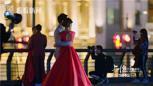 外灘親水平臺上,燈光映出喜悅的面孔;母親記錄孩子的成長,甜蜜的戀人用婚紗照定格幸福。