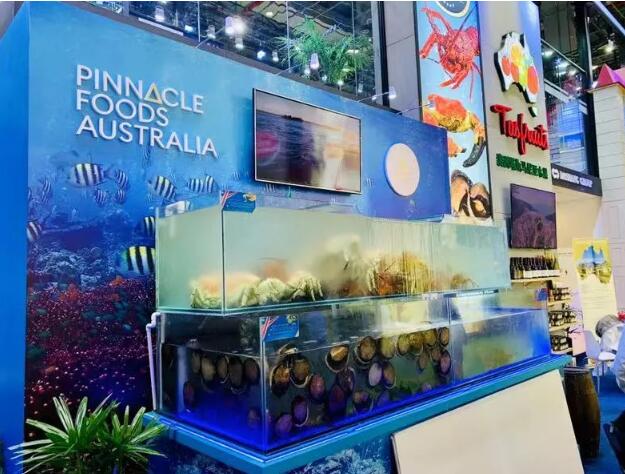 在澳大利亞一家水產(chǎn)品展區(qū),有著展會(huì)唯一鮮活的展品:大尺碼的澳洲龍蝦和皇帝蟹。經(jīng)歷長途跋涉,讓這些小家伙保持活力的秘訣,就是運(yùn)輸途中的急速冷凍技術(shù)以及快速通關(guān),從海里到展館的時(shí)間也就十幾個(gè)小時(shí)。