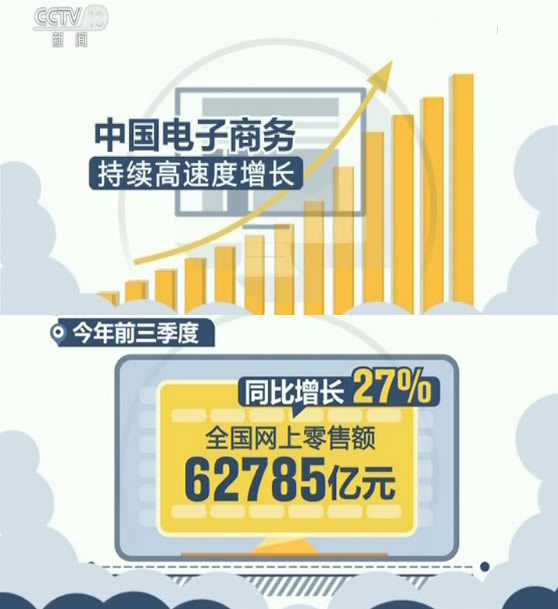 2017年中國(guó)數(shù)字經(jīng)濟(jì)規(guī)模達(dá)到27.2萬(wàn)億元,占國(guó)內(nèi)生產(chǎn)總值(GDP)比重的32.9%;中國(guó)電子商務(wù)也持續(xù)高速度增長(zhǎng),今年前三季度,全國(guó)網(wǎng)上零售額62785億元,同比增長(zhǎng)了27%。