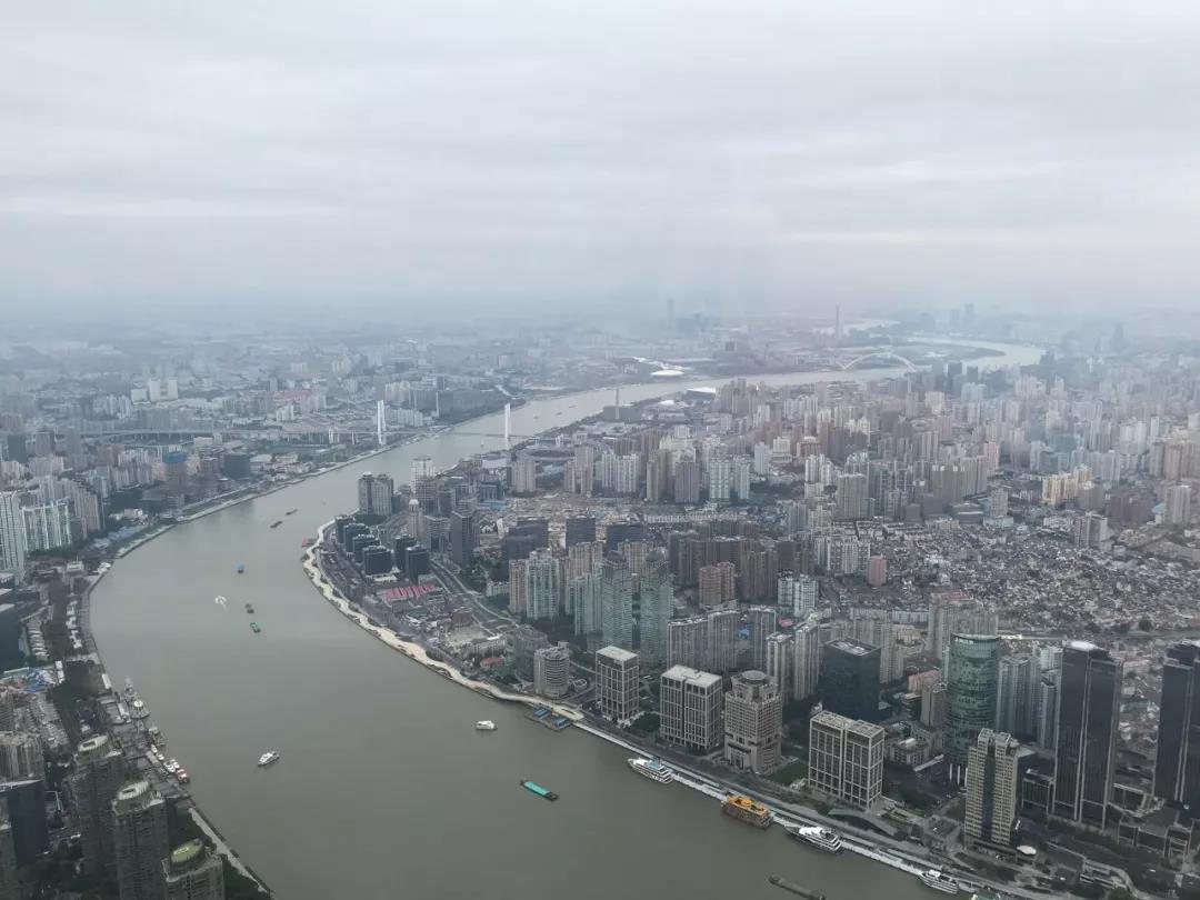 △在上海中心大廈俯瞰南浦大橋、盧浦大橋、徐浦大橋。(央視記者許永松拍攝)