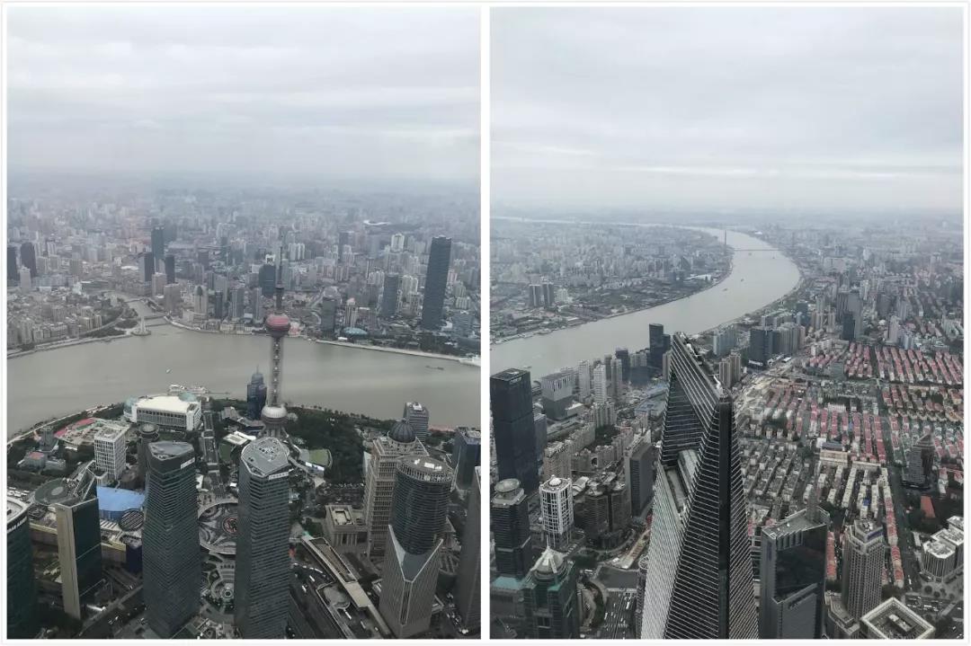△從上海中心大廈看東方明珠(左)、楊浦大橋(右)(央視記者段德文拍攝)