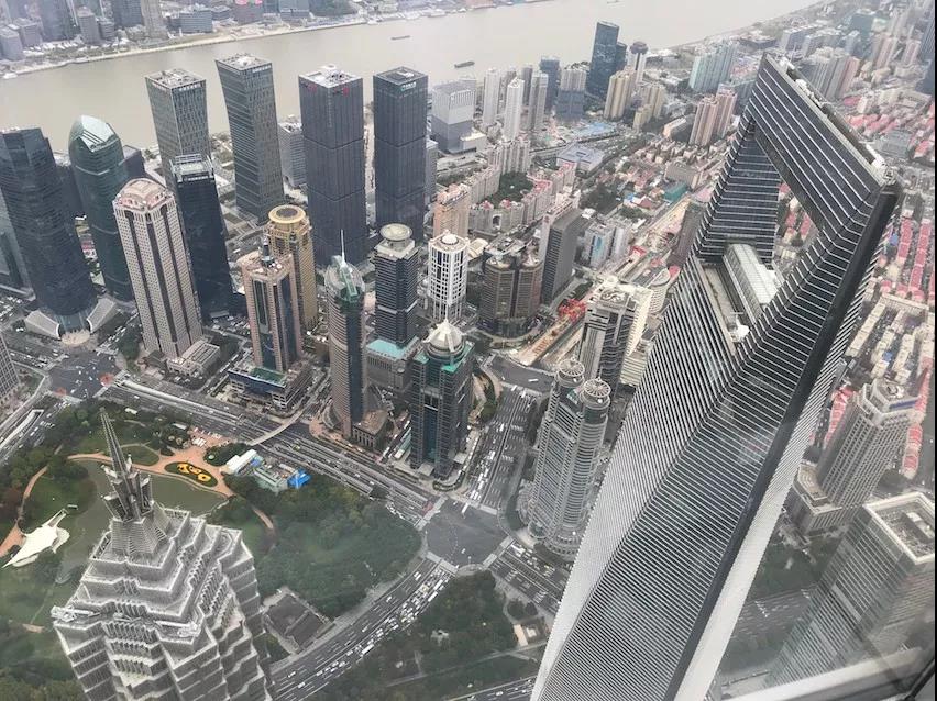 △在上海中心大廈看曾經(jīng)的最高樓上海金茂大廈和上海環(huán)球金融中心(央視記者許永松拍攝)