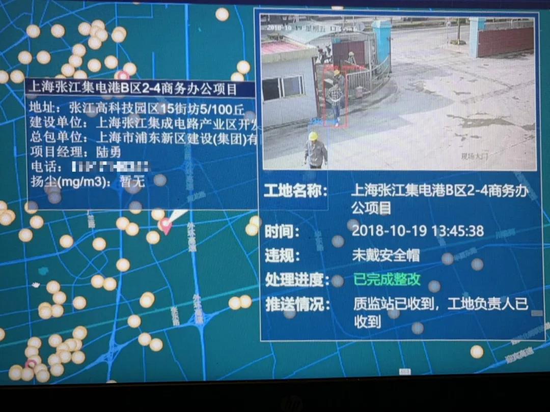 △舉個(gè)例子:這個(gè)工地智能監(jiān)管系統(tǒng)就及時(shí)發(fā)現(xiàn)了一位工人沒有佩戴安全帽進(jìn)場(chǎng),隨后迅速通知整改。(央視記者魏然拍攝)