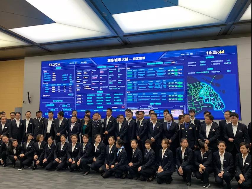 △浦東新區(qū)城市運(yùn)行綜合管理中心工作人員合影。(央視記者魏然拍攝)