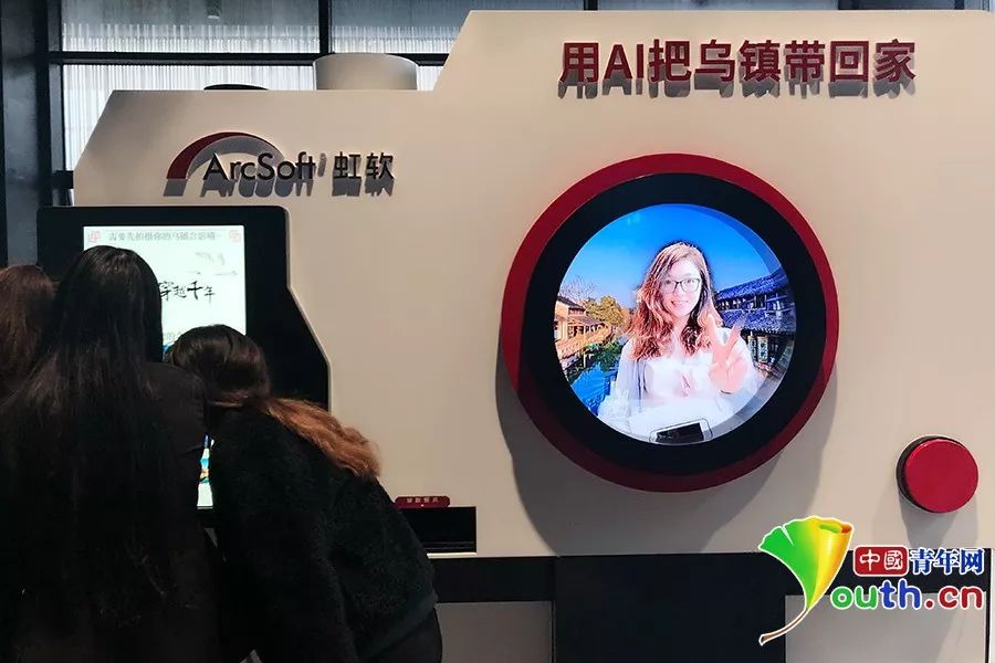 ArcSoft虹軟的巨型智能相機,用AI留住烏鎮(zhèn)的“互聯(lián)網時刻”。通過幾步簡單的操作,體驗者即可從巨型智能相機中得到一套以千年水鄉(xiāng)烏鎮(zhèn)為背景的AI黑科技照片。 中國青年網記者 盧冠瓊 攝