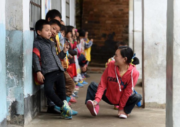 25歲的老師楊敏出生在湘南山區(qū)三元嶺村,因小兒麻痹癥無法站立,她自稱“青蛙公主”。三元嶺小學(xué)師資匱乏,楊敏利用互聯(lián)網(wǎng)向外求助,她的800多條網(wǎng)帖吸引了50多名志愿者前來支教。 李尕 攝
