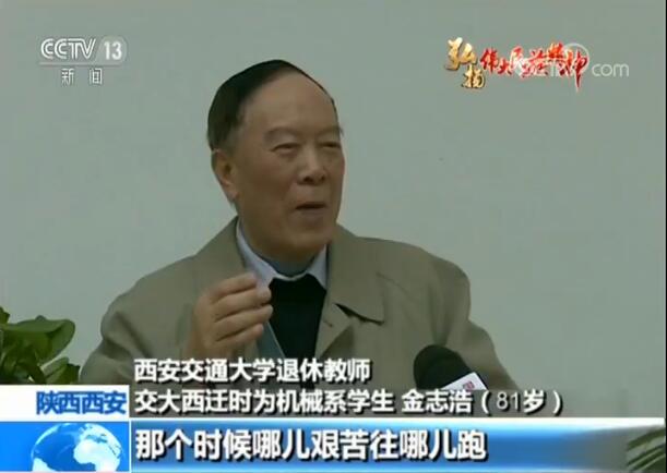 西安交通大學退休教師、交大西遷時為機械系學生金志浩:唱著《再見媽媽》就一路就奔到西安來了。那個時候哪兒艱苦往哪兒跑,黨的需要就是我的志愿,那是沒話說的,也不在乎艱苦。