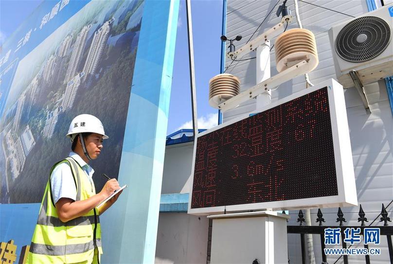 在廣西南寧市一處建設(shè)工地,工作人員在查看安裝在工地的揚塵在線監(jiān)測系統(tǒng)有關(guān)數(shù)據(jù)(5月25日攝)。近年來,廣西南寧市充分利用智慧城市建設(shè)成果,建立揚塵治理視頻綜合管理系統(tǒng),全力呵護“南寧藍”。 新華社記者 陸波岸 攝