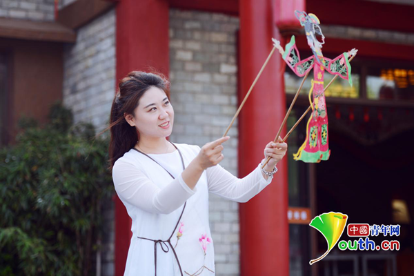 李娟在展示皮影。本人供圖
