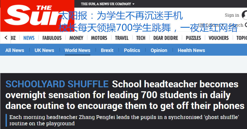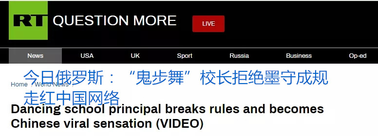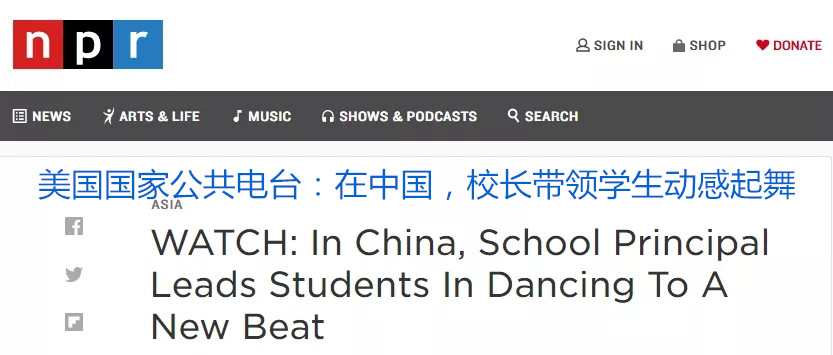 對(duì)于張校長(zhǎng)的舞步,美國(guó)國(guó)家公共電臺(tái)是這樣報(bào)道的:穿一身帥氣的黑色衣服,山西一小學(xué)校長(zhǎng)領(lǐng)操“鬼步舞”,學(xué)生步伐整齊統(tǒng)一,在任何一家舞蹈俱樂部都會(huì)引人注目!山西西關(guān)小學(xué)的學(xué)生滑動(dòng)腳步,揮舞手臂,做著查爾斯頓舞和搖擺舞的動(dòng)作。