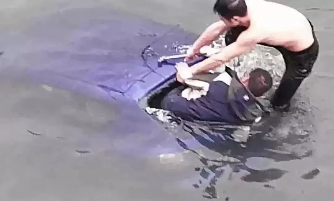 隨后他托舉著司機(jī)離開下沉車輛,