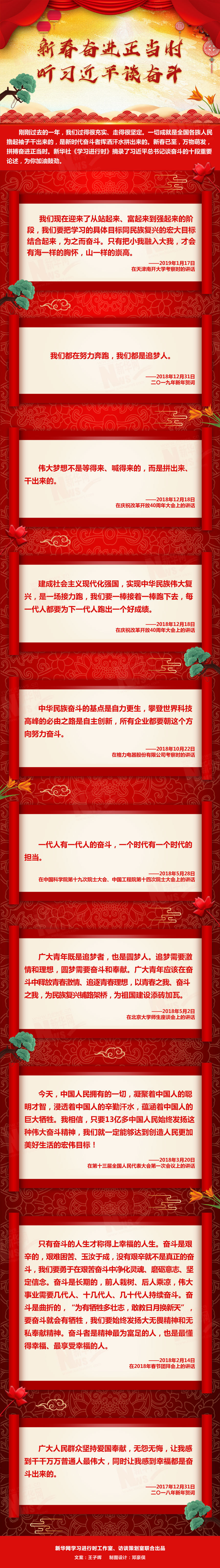 辭舊迎新,賀歲送福。在2019年春節(jié)團拜會上的講話中,習近平總書記飽含深情地指出:“天道酬勤。勤勞勇敢的中國老百姓,日子一定會越過越紅火!我們偉大的祖國,前程一定會越來越遠大!”這是對全黨全軍全國各族人民在過去一年所取得累累碩果的充分肯定,是對我們將在未來歲月共同追夢、成就偉業(yè)的殷殷期許。