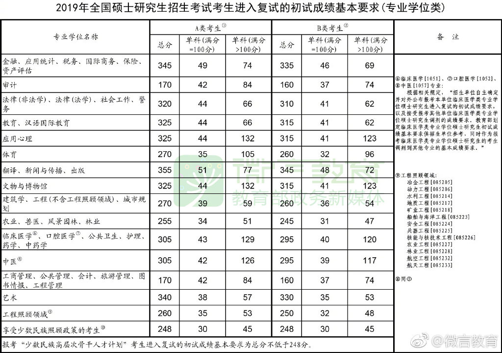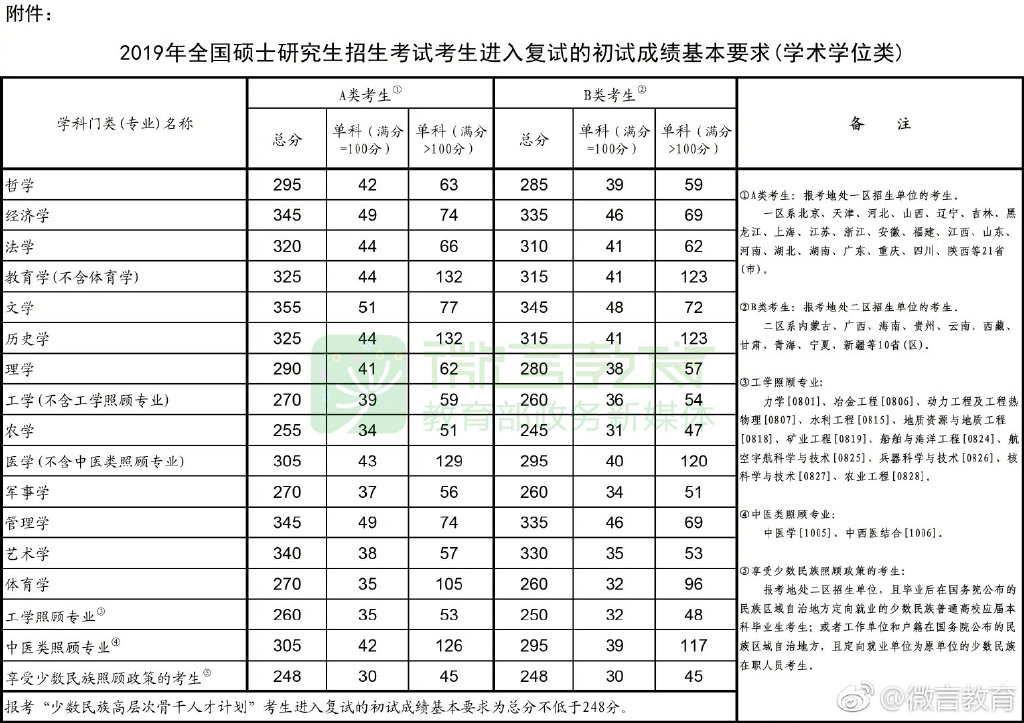央視網(wǎng)消息:據(jù)教育部網(wǎng)站消息,今日,教育部公布《2019年全國(guó)碩士研究生招生考試考生進(jìn)入復(fù)試的初試成績(jī)基本要求》(國(guó)家分?jǐn)?shù)線),2019年全國(guó)碩士研究生復(fù)試錄取工作全面展開(kāi)。