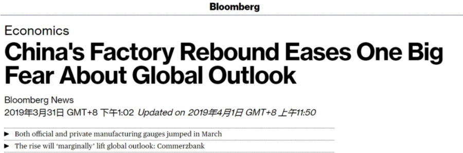 路透社也報(bào)道稱,昨日出爐的中國3月官方制造業(yè)和非制造業(yè)商務(wù)活動(dòng)指數(shù)均升至半年高位,其中制造業(yè)PMI四個(gè)月來首度重返榮枯線,表現(xiàn)遠(yuǎn)超市場(chǎng)預(yù)期。